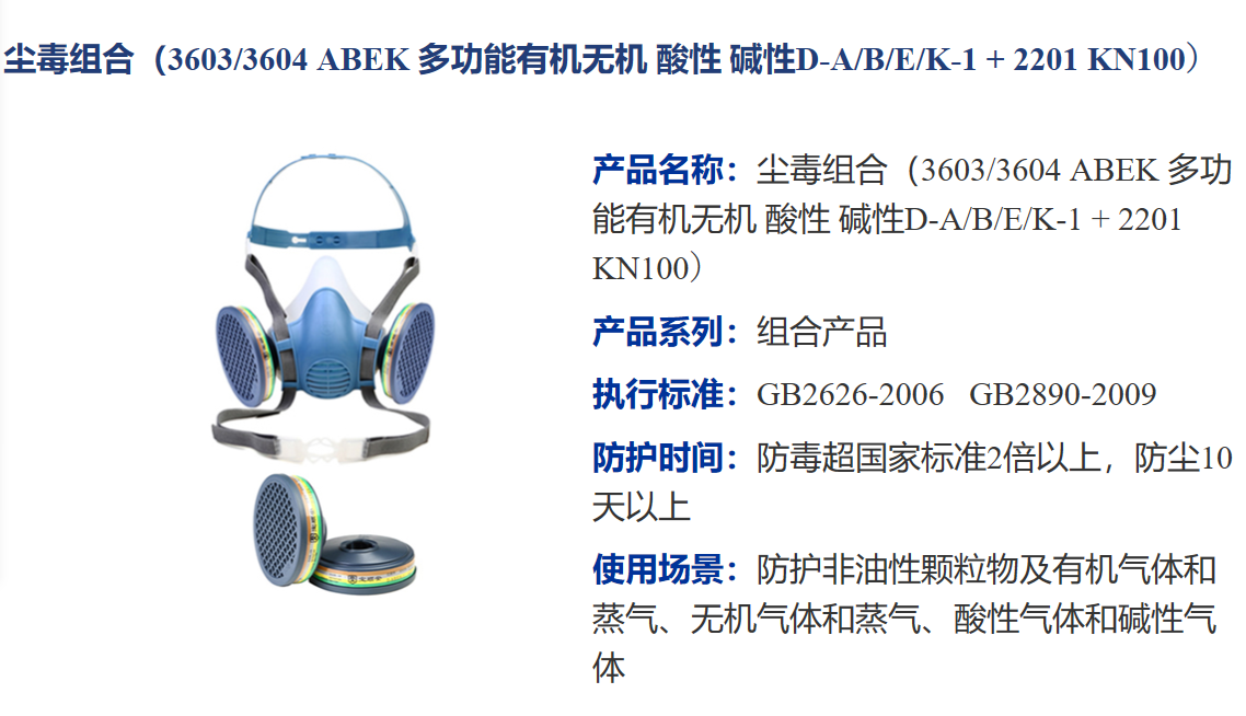 焦化生产过程中会产生致癌性的焦炉逸散物,包括油性颗粒物和非油性颗粒物,所以要使用KP系列的口罩或滤棉,滤棉要配合面罩使用KP95滤棉或KP100滤棉,例如宝顺安KP100 3301及KP95 2301 过滤原件产品既可以防油性颗粒物和非油性颗粒物。同时产生的有机气体、酸性气体、碱性气体等混合性的有毒有害气体,要使用ABEK型的综合性气体防护滤毒盒,例如宝顺安3603过滤件,可以配合呼吸防护全硅胶半面罩或全硅胶全面罩使用。