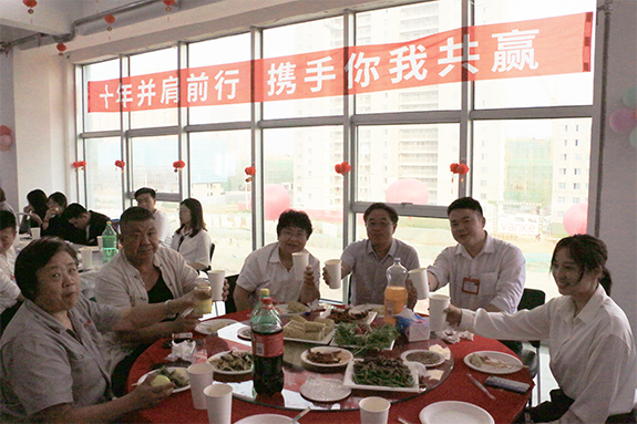 当日晚上,公司举行了宝顺安安全设备有限公司成立十周年的宴会活动,宴会开始之前公司董事长张弘先生发表了致辞,随后全体成员享用着丰盛的晚餐,欣赏各部门组织的表演,为公司成立十周年举杯同庆。整个宴会在和谐、温馨、欢乐的气氛中圆满结束。