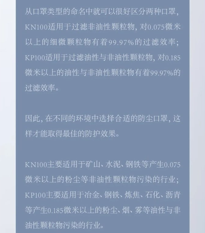 KN100防尘口罩和KP100防尘口罩的区别