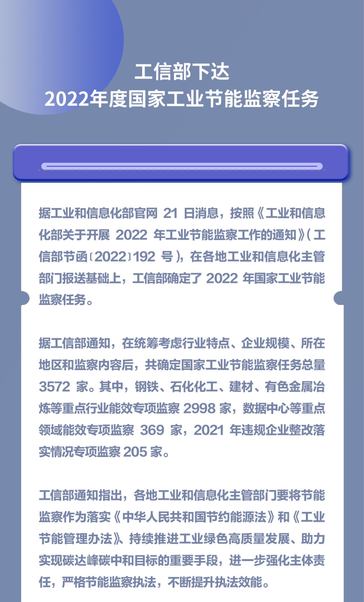 工信部下达2022年度国家工业节能监察任务