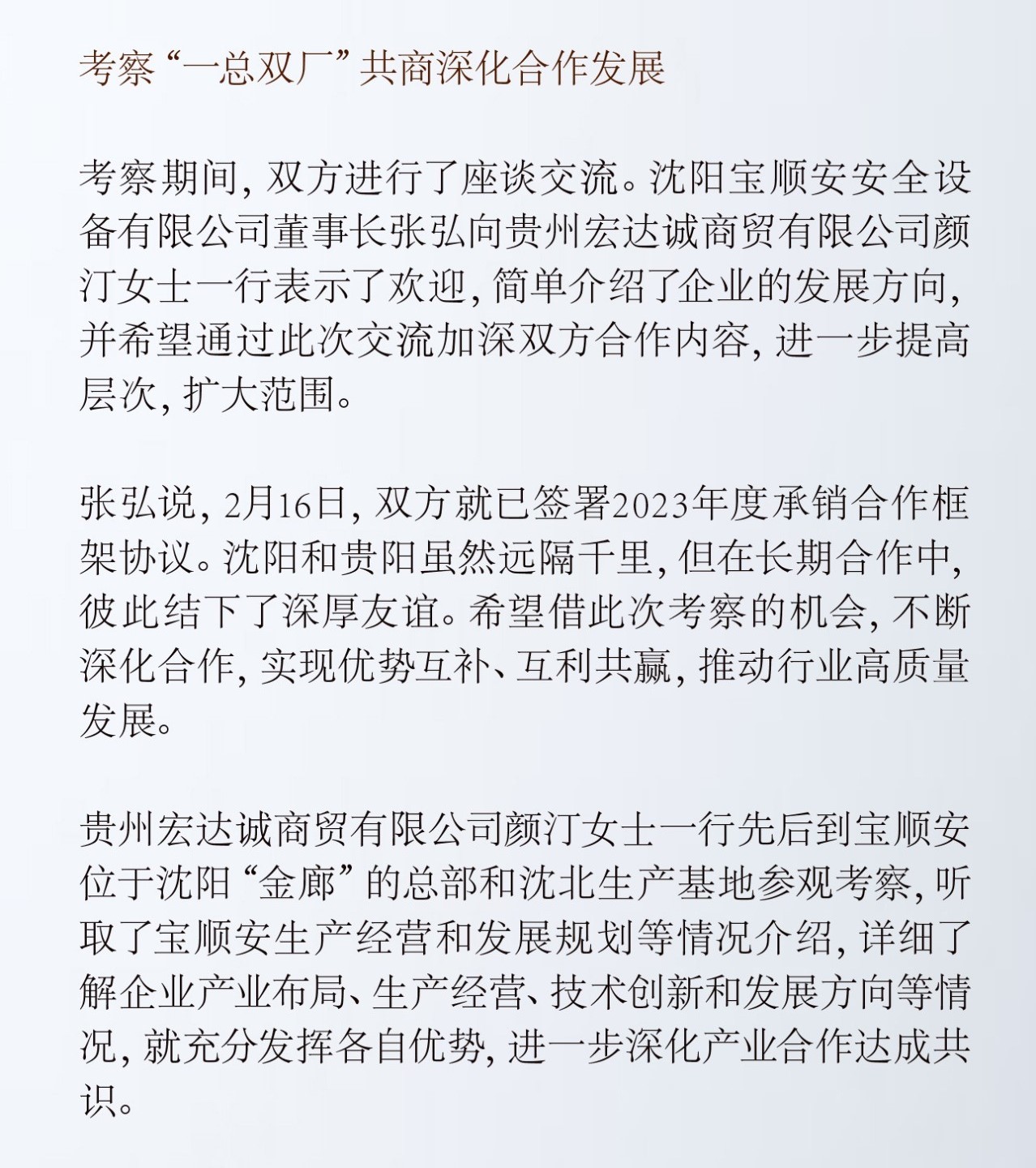 贵州宏达诚商贸有限公司到宝顺安考察交流
