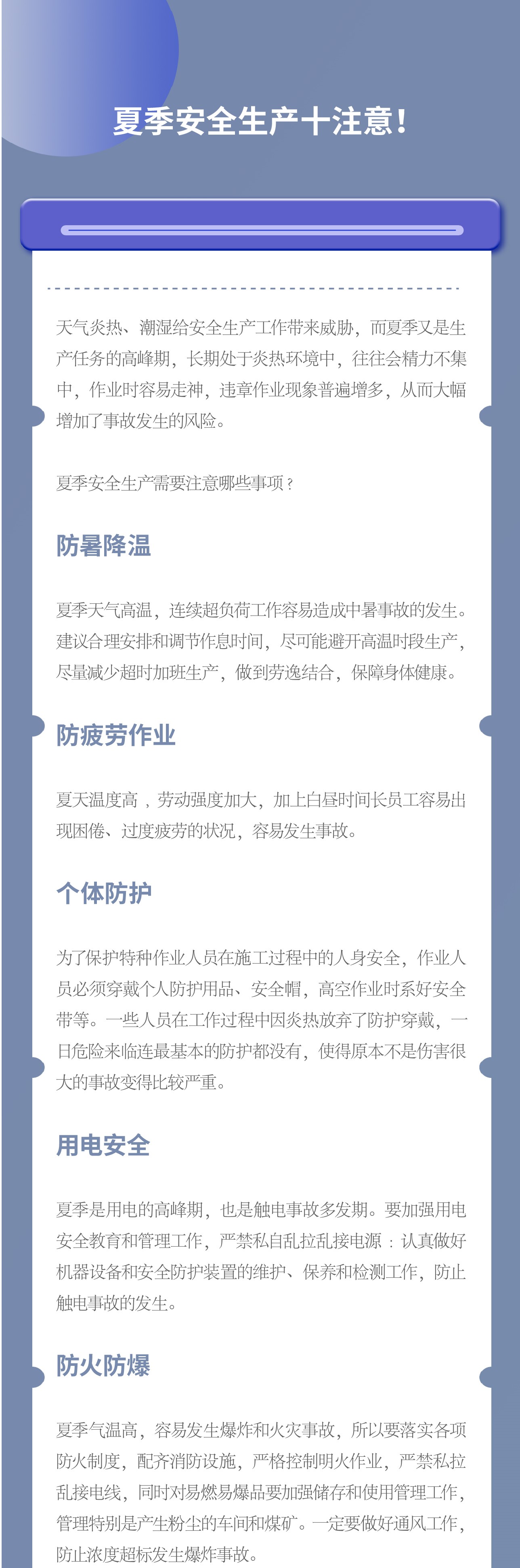 夏季安全生产十注意!