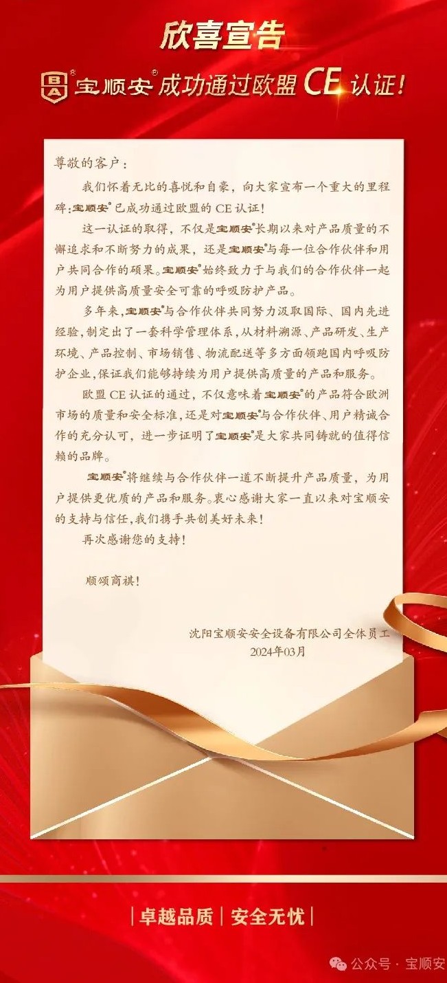 欣喜宣告:宝顺安成功通过欧盟CE认证!